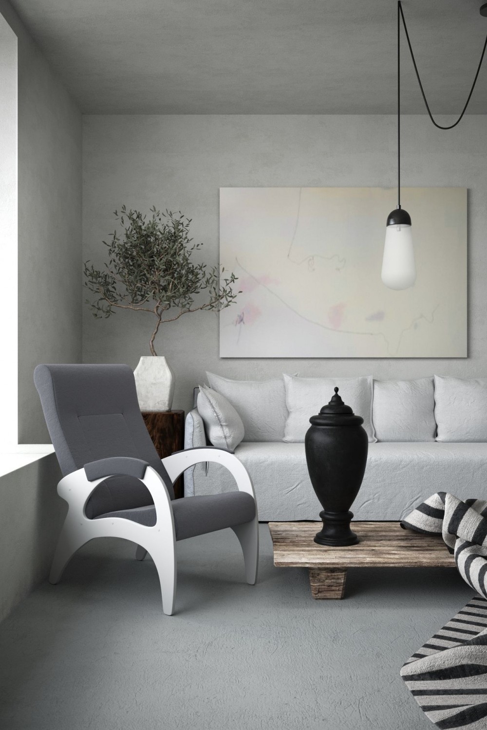 Кресло для отдыха Римини 19-Т-ГР (ткань\белые) ГРАФИТ