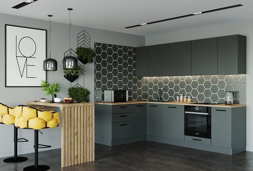 Кухня угловая Антрацит 2600х1600 (Стол. 38мм)